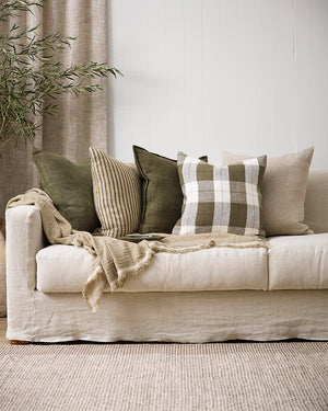 A study in balance, the Abbott square cushion features asymmetrical linework woven into a natural ecru base. Available in two colourways — a soft tonal ecru palette or a sage and ecru combination — Abbott brings subtle contrast and refined simplicity to interiors. Crafted from a soft cotton blend, its generous proportions offer comfort, texture,...